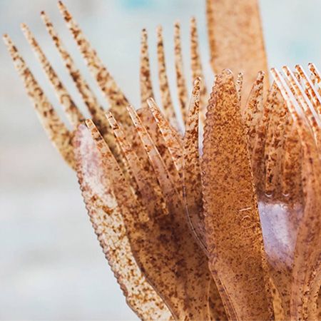 Buğday kepeğinden üretilen tek kullanımlık çatal, bıçak, kaşık ve tatlı kaşığı.